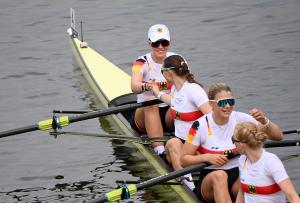 Der Frauen-Doppelvierer mit Lena Gresens (Ruder-Club Potsdam), Charlotte Luster (Hallesche Ruder-Vereinigung), Paula Lutz (Mannheimer Ruder-Club) und Lanea Rüter (Ruder-Club Tegel) geht um 11:10 Uhr gegen Großbritannien, die Schweiz und Australien an den Start. Die ersten beiden Plätze führen direkt ins A-Finale.