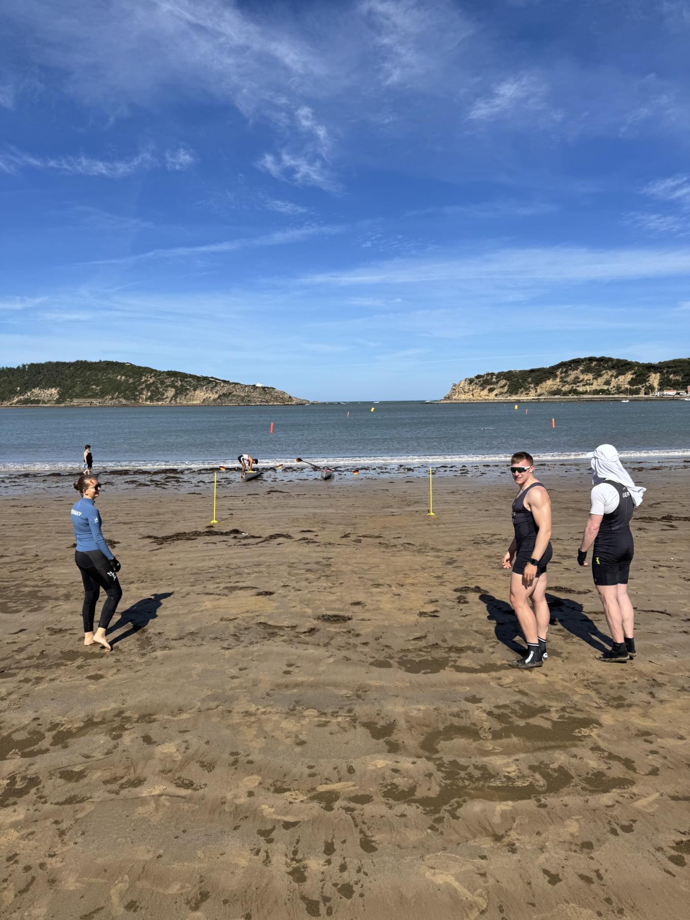 Der Fokus lag auf sauberer Rudertechnik, den Bewegungsabläufen beim Ein- und Ausstieg und der körperlichen Robustheit: Täglich standen bis zu vier Einheiten auf dem Programm – zweimal ging es aufs Meer hinaus. Dazu gab es Einheiten auf dem Ruder-Ergometer oder r BikeErg und im Kraftraum. Coastal Rowing bedeutet, auch bei guten äußeren Bedingungen, eine neue Art der Tagesplanung im Trainingslager und ein gewisses Umdenken beim Trainergespann Adrian Bretting und Hendrik Bohnekamp: „Nach einer Stunde gegen die Wellen ist man nass, kalt und kaputt – und läuft auch mal im Eifer des Gefechts gegen den Ausleger und hat danach mit blauen Flecken und kleineren Verletzungen zu kämpfen“, berichtet Bretting schmunzelnd. Umso erfreulicher: Niemand wurde krank, das Team blieb durchgehend gesund und hochmotiviert. Bestens betreut von Coastal-Physiotherapeutin und Boathandlerin Katrin Hussendörfer.