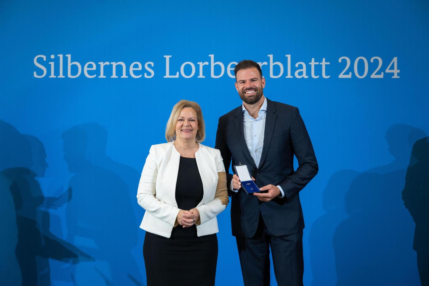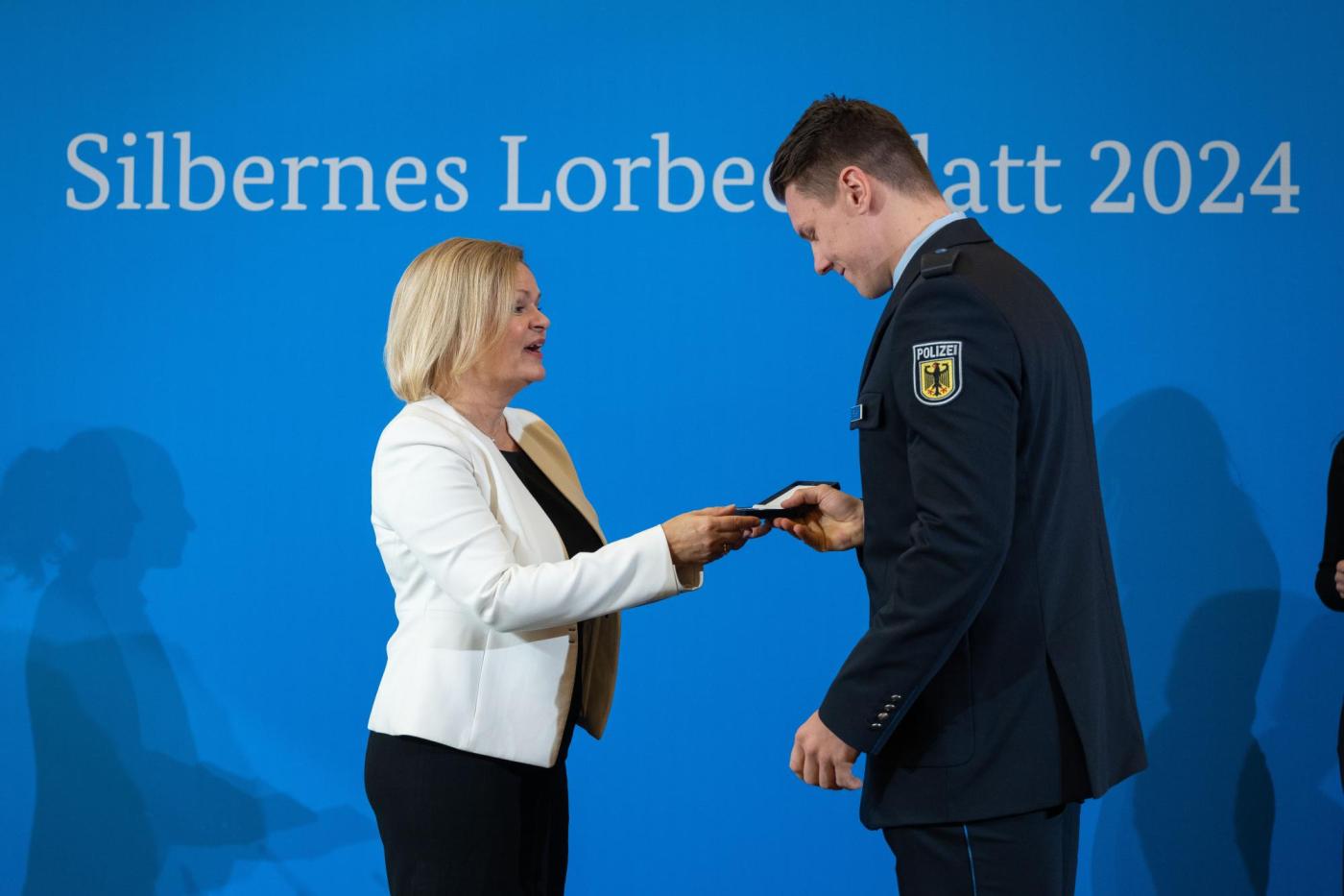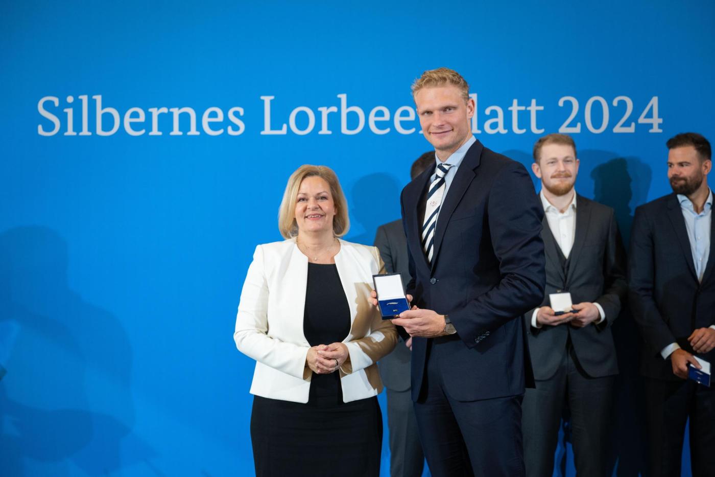 „Deutschland ist eine starke und vielfältige Sportnation. Die über 70 Spitzenathletinnen und -athleten, die ich heute mit dem Silbernen Lorbeerblatt auszeichnen durfte, sind große Vorbilder – im Sport und weit darüber hinaus“, sagte Faeser. Sie stünden „für Fairplay, Respekt und Toleranz. Gerade in Zeiten, in denen unsere Demokratie und unser gesellschaftlicher Zusammenhalt durch die russische Aggression von außen und durch Extremismus von innen bedroht werden, zeigen sie, wie der Sport Menschen zusammenbringt und das friedliche Miteinander stärkt."