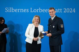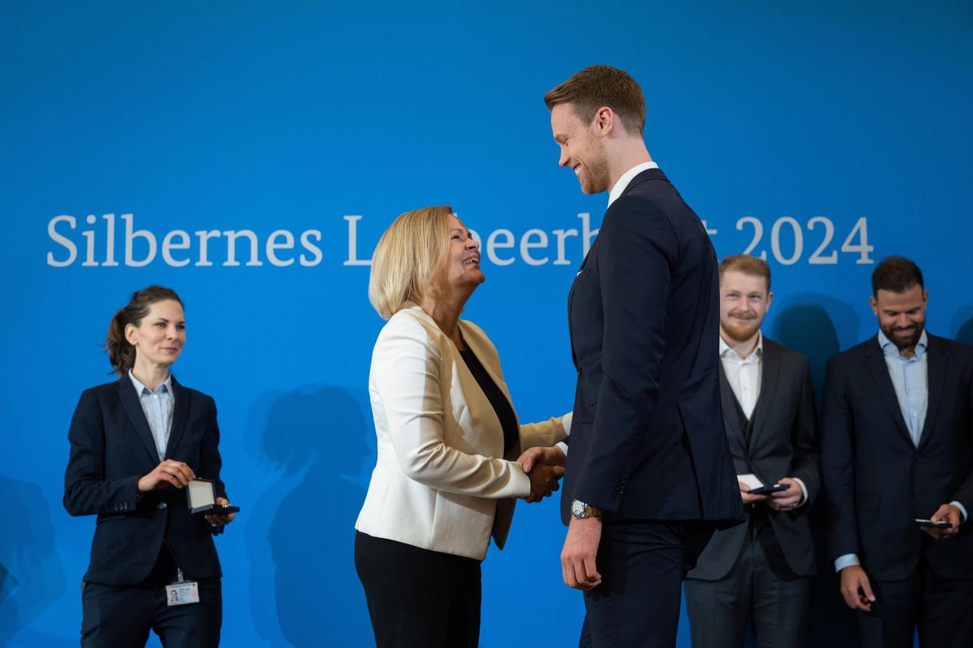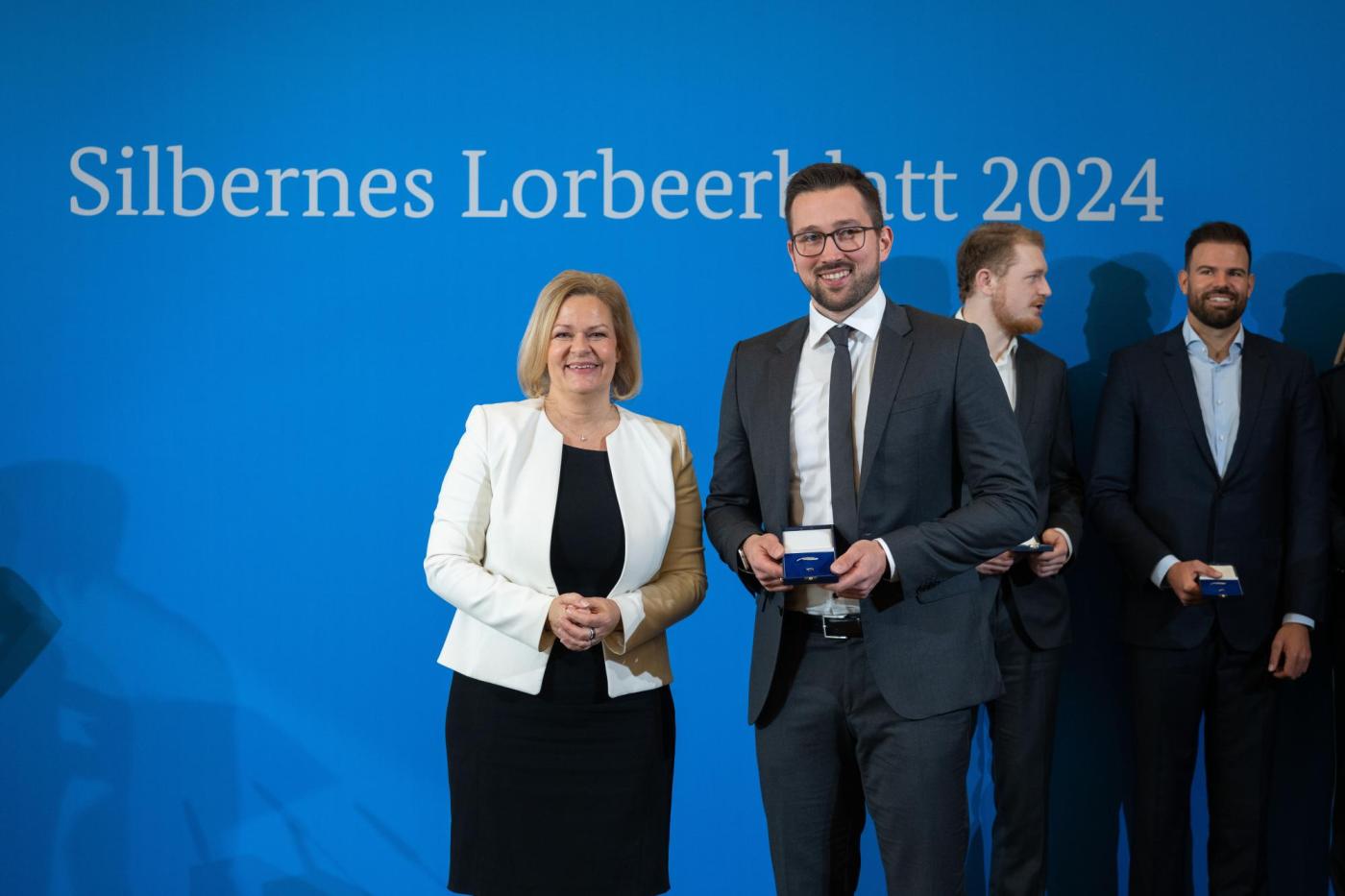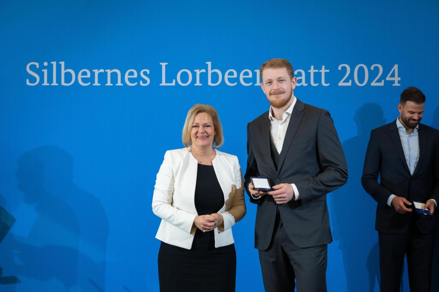 „Deutschland ist eine starke und vielfältige Sportnation. Die über 70 Spitzenathletinnen und -athleten, die ich heute mit dem Silbernen Lorbeerblatt auszeichnen durfte, sind große Vorbilder – im Sport und weit darüber hinaus“, sagte Faeser. Sie stünden „für Fairplay, Respekt und Toleranz. Gerade in Zeiten, in denen unsere Demokratie und unser gesellschaftlicher Zusammenhalt durch die russische Aggression von außen und durch Extremismus von innen bedroht werden, zeigen sie, wie der Sport Menschen zusammenbringt und das friedliche Miteinander stärkt."