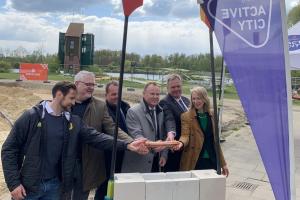 Grundsteinlegung für die Erweiterung des Hamburger Bundesstützpunkts Rudern im Regattazentrum Allermöhe
