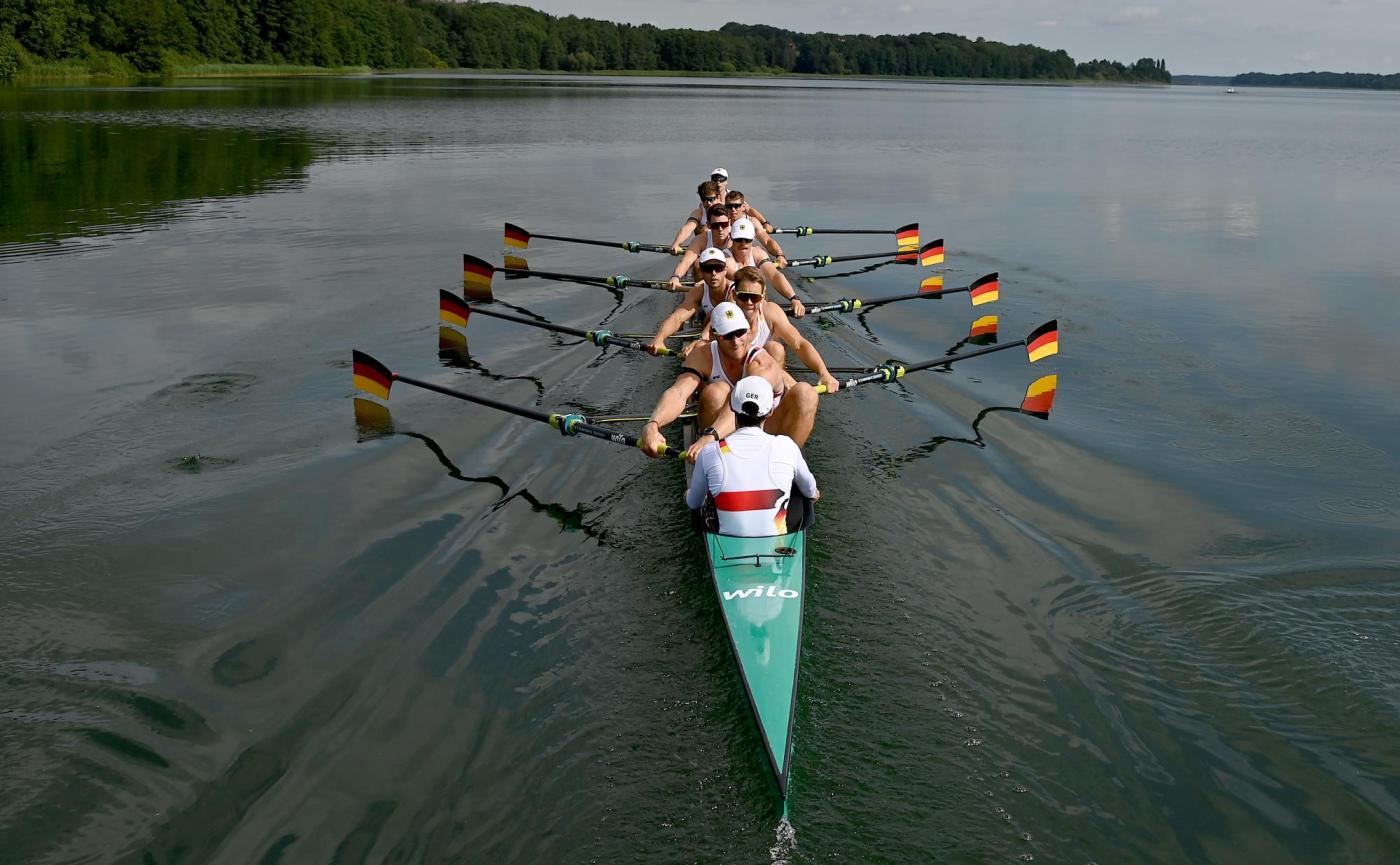 In der breiten deutschen Öffentlichkeit wird Rudern meist mit dem Deutschland-Achter assoziiert. Die vielen Erfolge, die das Boot über Jahrzehnte gefeiert hat (darunter zwei Olympiasiege 1988 und 2012), brachten ihm den Ehrentitel Flaggschiff ein. Für die aktuelle Besatzung ist es schwer, dem aus Gewohnheit hohen Anspruch gerecht zu werden. Als Belastung empfindet das Jonas Wiesen (28) von der RG Treis-Karden jedoch nicht. „Es ist eine große Ehre, Teil dieser Geschichte sein zu dürfen. Es bedeutet Motivation, wieder zu schaffen, was in der Vergangenheit möglich war.“
