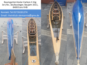Baumgarten Kevlar-Carbon-C-Gig 3x+/4x- (herausnehmbarer Schlagplatz kann durch Steuersitzschale ersetzt werden), Skullausleger, Baujahr 2011, 8400 Euro VHB.