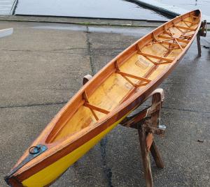 Holz C Gig 1x an Liebhaber oder zur Restaurierung oder als Dekoobjekt abzugeben. Boot ist am Heck undicht. Ausleger usw. Sind vorhanden und können bei Bedarf auch gegen Spende abgegeben werden.