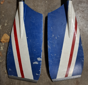Hier haben wir einzelne Riemen, unlackiert die bei Bedarf z.B. eien Vierer oder Achterstaz auffüllen könnten nach Riemenbruch.