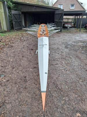 Gut erhaltener Renndoppelvierer/ Riemenvierer. Baujahr 1986. Gewichtsklasse 80 bis 90Kg. Seit 10 Jahren kaum gerudert. Ausleger Skull und Riemen dabei. Muss aus Platzmangel schnell weg! Nur an Selbstabholer.