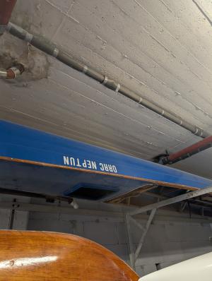 Es weist diverse Schäden auf: Undichter Kiel, Keine Ausleger, Keine Rollsitze, Lose Luftkästen... Halt Jahrzehnte Schülerverein.