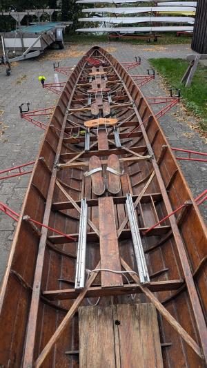 Wir geben einen schönen geklinkerten Gig 4x+ ab, da wir Platz in unserer Bootshalle benötigen