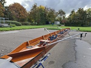 Wir verkaufen unseren 4+, da wir eine Neuanschaffung getätigt haben. Das Boot befindet sich in sehr gutem Zustand und ist sofort einsatzbereit. Es kann auch ohne Steuermensch mit Fußsteuer gefahren werden, sofern die Mannschaft schwer genug ist.