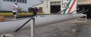 Weitere wichtige Info: das Boot hat auch Riemenausleger und ist als Kombiboot 4x/4- zu verkaufen. Die Stangenartige Form der Ausleger kommt davon, dass diese als erste Flügelausleger als Prototypen gebaut wurden. Funktionieren einwandfrei.