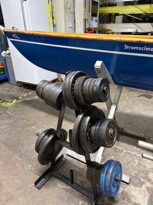 Ständer für Gewichtsscheiben zum Verkauf. Guter Zustand, jedoch mit einigen Gebrauchsspuren.