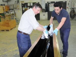 Das änderte sich erst durch die Schalenbauweise mit gebogenen Zedern- und später Sperrholzbootshäuten. Formverleimte Sperrholzboote brachte Gustav Gehrmann um 1950 erstmals auf den Markt. Um 1960 tauchten die ersten GFK-Kunststoffgigs auf, die noch ernorm schwer waren und durch Wasseraufnahme der Glasmatten ständig an Gewicht zunahmen. Auch die Rennboote baute man zunächst nach diesem Verfahren, ersetzte die Polyester-Harze jedoch durch Epoxid-Harze und die Glasmatten durch Glasseide oder Kevlar-Gewebe. Das brachte schon eine deutliche Gewichtsersparnis. Noch leichter wurden die Boote dann durch die Sandwichbauweise mit Waben oder Hartschaum als Zwischenschicht und eingelagerten Kohlenstofffasern. Dadurch konnten die Bootsgewichte so weit heruntergedrückt werden, dass sich die FISA aus Gründen der Chancengleichheit im Wettkampf genötigt sah, mit der Festlegung von Mindestgewichten für international eingesetzte Wettkampfboote erstmals Einfluss auf Entwicklungstendenzen zu nehmen.