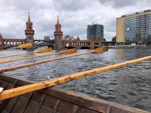 Nach einem Schläfchen in Euren Quartieren kehrt Ihr am Sonnabend zur TRG zurück, wo die Boote auf Euch warten. Die anschließende Tagesfahrt (34 km) wird als Rundfahrt ausgeführt. Es geht die Spree abwärts durch die Oberbaumbrücke, am Berliner Schloß und dem Reichstag vorbei zum Spreekreuz, wo wir in den Landwehrkanal einbiegen. Weiter geht es durch das quirlige Kreuzberg und vorbei am höchsten Gebäude Berlins, dem Estrel Tower in Neukölln, zurück zur TRG. Dort stärkt Ihr Euch bei Kaffee, Kuchen und einem kleinen Imbiß.